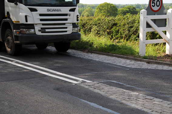The attractive rustic finish gives Quicksetts a visual appearance akin to granite setts but requiring no excavation. Instead Quicksetts can be installed directly onto asphalt or concrete and opened to traffic in a matter of hours. Cognisant of safety, Quicksetts have been designed with chamfered edges to eliminate possible trip hazards but still offer road users a tactile vibration when deviating from their lane.