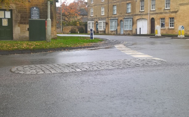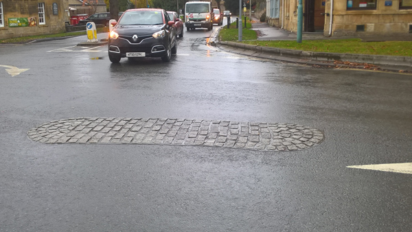 Installed during two night road closures in October 2016, the Amey team, finished the works on time to be re-opened to the morning rush hour traffic on the busy A429. The traffic islands perfectly compliment their historic surroundings whilst effectively segregating the traffic approaching and exiting the mini roundabout whilst also allowing longer vehicles to ride over the feature without causing any damage. The initial feedback on the appearance from local residents has been very positive. Future schemes are already in the planning following another successful Quicksetts application.