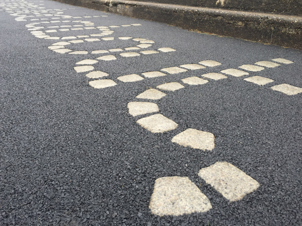 Whilst pricing for the tender, local contractor Devon & Cornwall Surfacing realised the complexity of making shapes with traditional granite setts and began researching for a quicker, easier solution. Quicksetts being a thickness of 18mm could be adhered without the need for excavation. The smooth finished setts could produce elegant, perfectly formed letters making them the ideal choice for the project. Resin bound aggregate would then be used to infill to a depth of 18mm between the letters.
